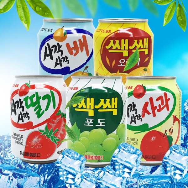 韩国进口饮料乐天粒粒橙葡萄梨汁草莓238ml果汁饮料饮品餐饮批发
