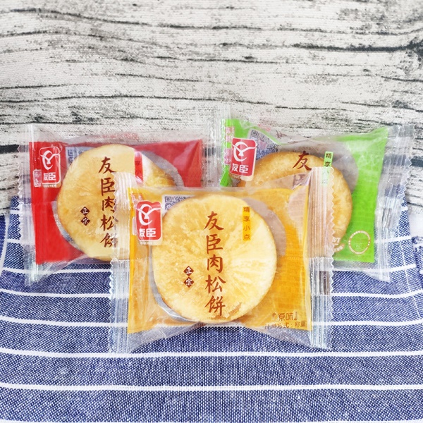 zb一件代发友臣肉松饼肉松棒夹心葱香香辣口味陈金丝肉松饼批发