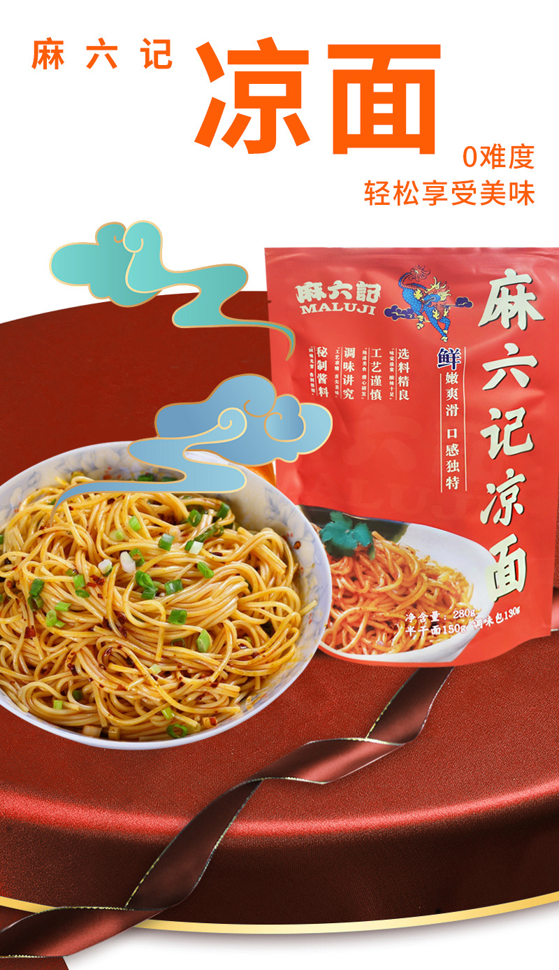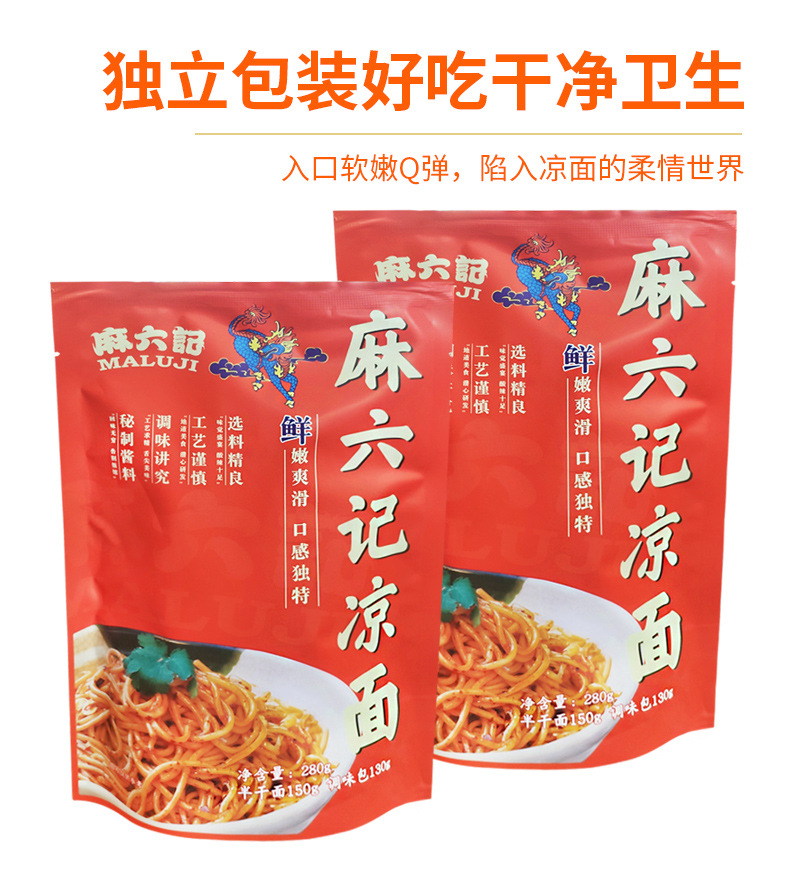 5袋包邮 麻六记凉面280克袋张兰鲜嫩爽滑独特小面酸辣口味批发