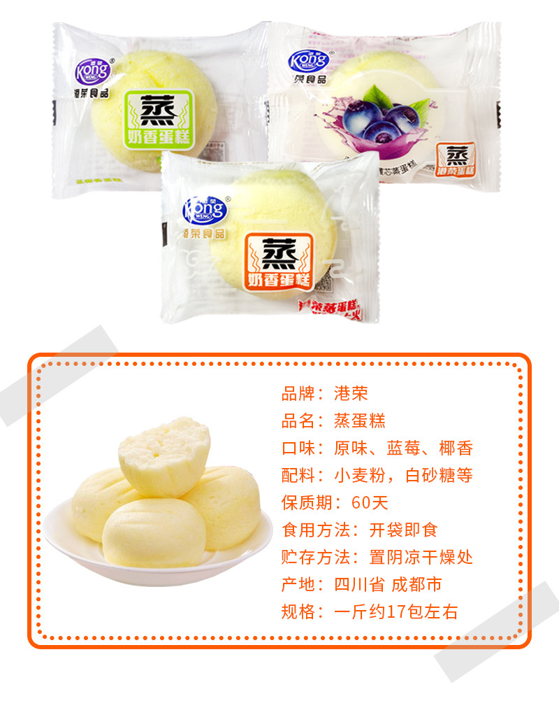 港荣蒸蛋糕鸡蛋奶香蓝莓整箱4斤营养早餐点心奶香早餐办公室零食