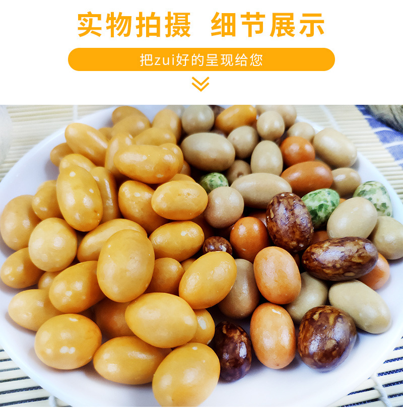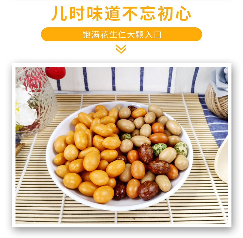 包邮亿莱旺多彩花生鱼皮花生脆皮花生裹衣花生散称小包装零食炒货