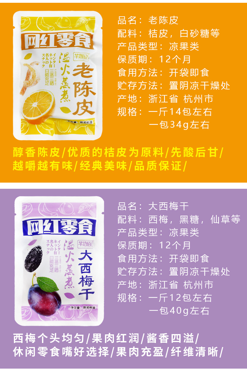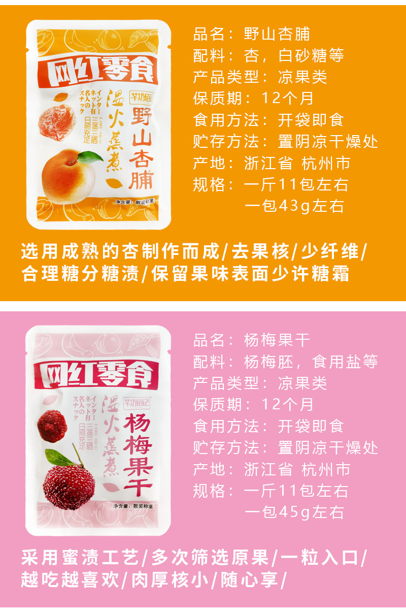芊坊佰记网红零食黄桃蓝莓陈皮鲜杨梅果干水果果干果脯蜜饯批发