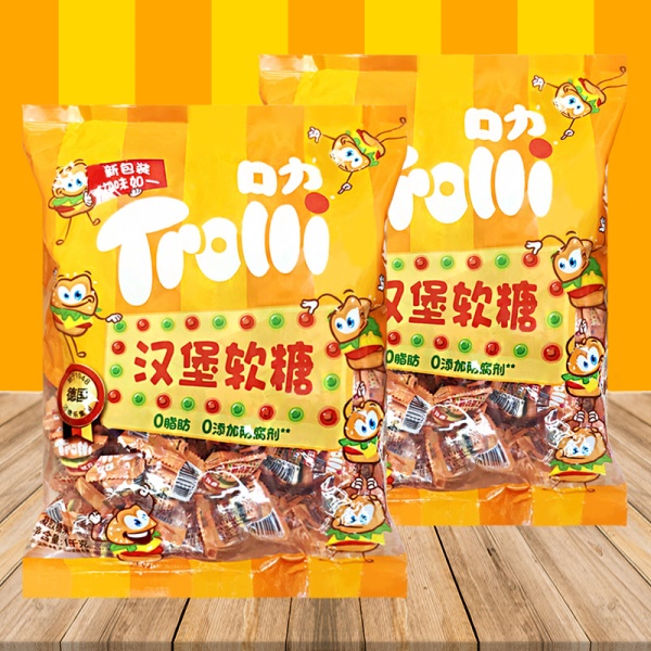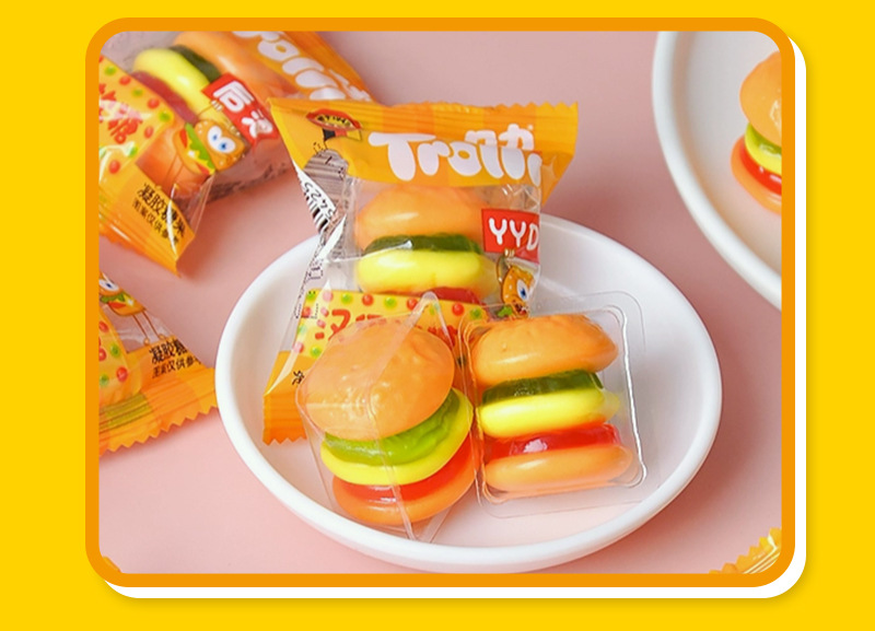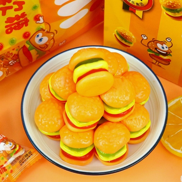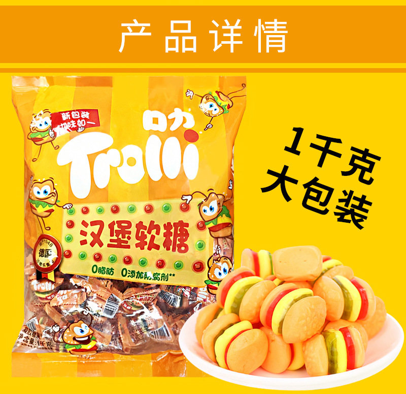 包邮口力汉堡包橡皮糖2斤/袋装喜糖糖零食果夹心软糖小吃休闲食品
