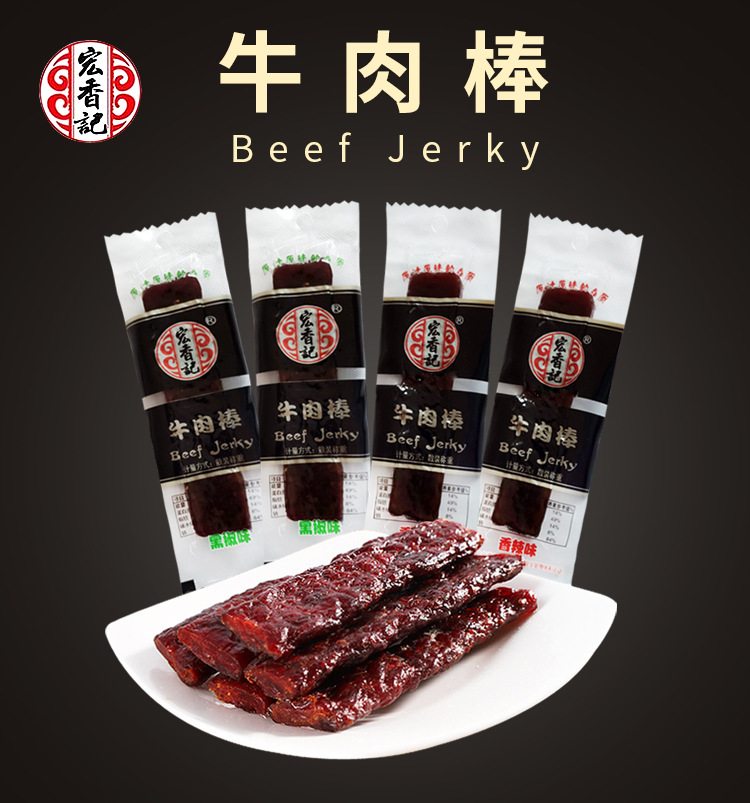 包邮宏香记牛肉棒5斤原汁原味母黑椒香辣开袋即食肉食批发亲妈妈