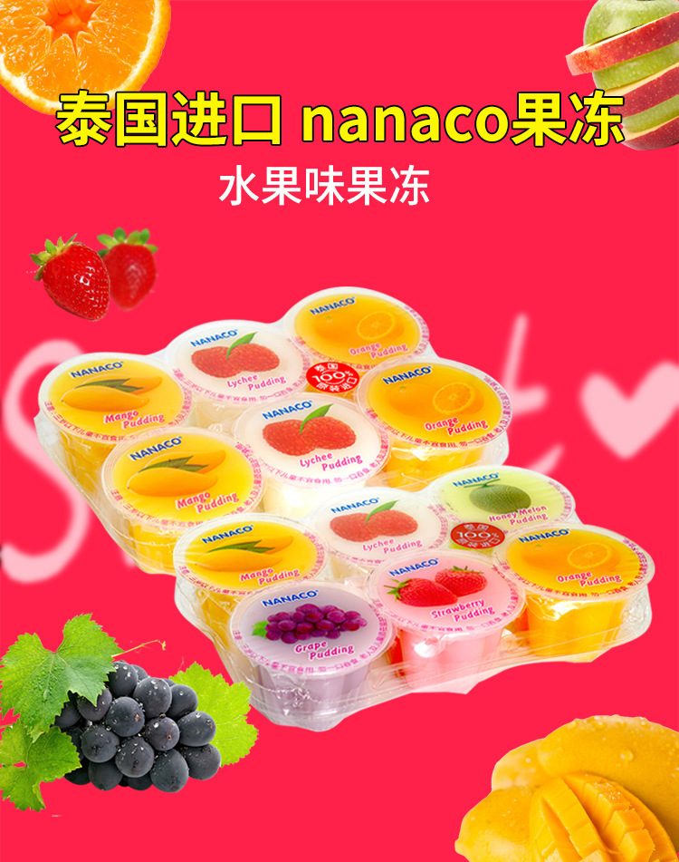 泰国进口NANACO果冻布丁果味型480g网红休闲零食小吃芒果橙子草莓