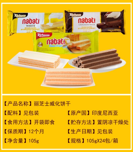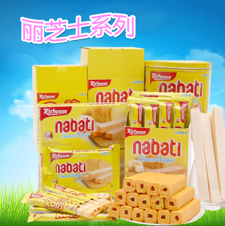 印尼进口丽芝士nabati奶酪芝士威化玉米夹心卷饼干全品相批发