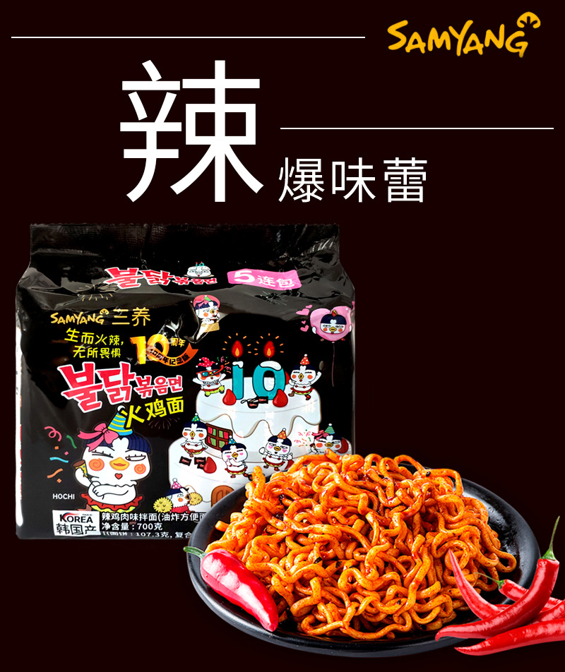 现货 韩国进口三养火鸡面140g*40网红即食拌面芝士倍辣辣鸡肉味