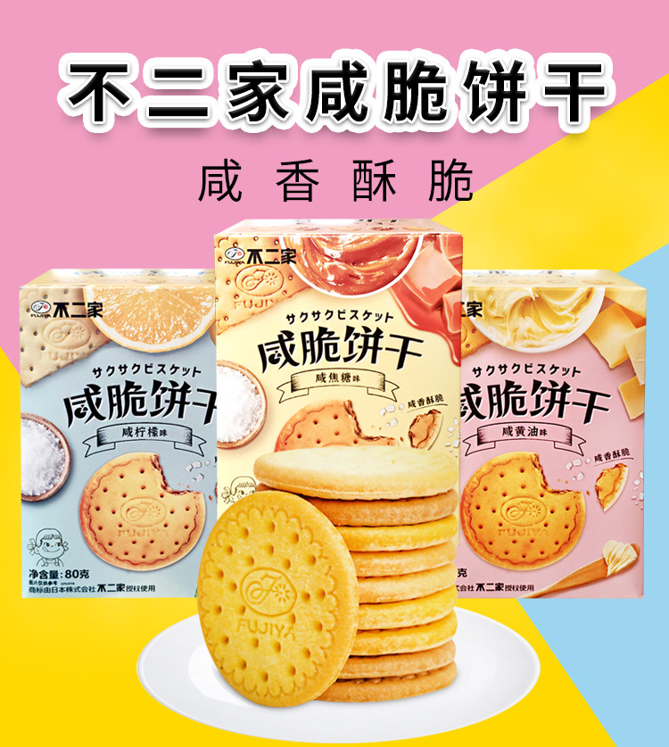 不二家咸脆饼干80g/盒咸焦糖味下午茶零食网红休闲小吃饼干伴手礼