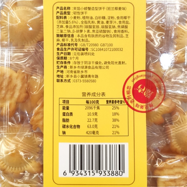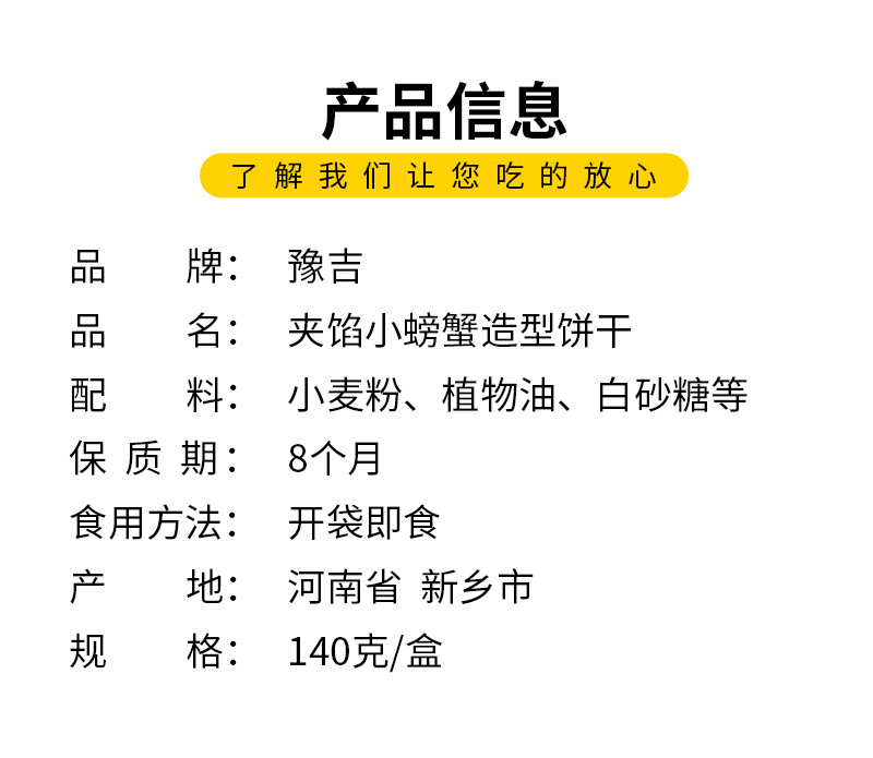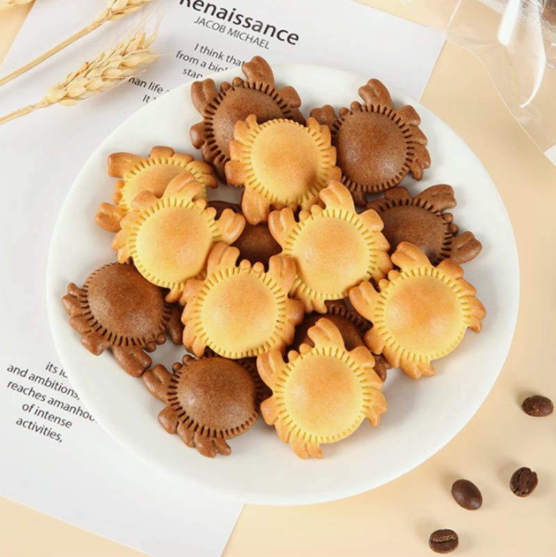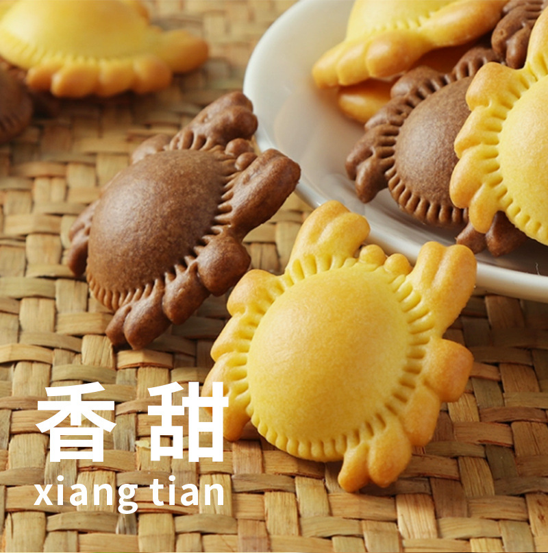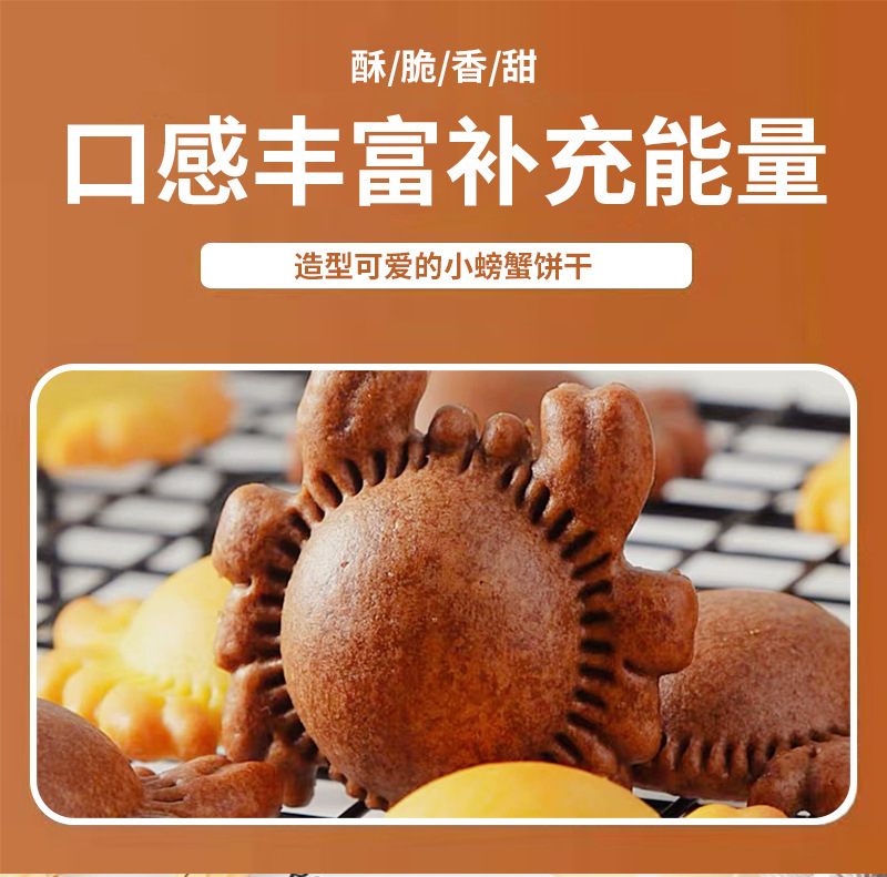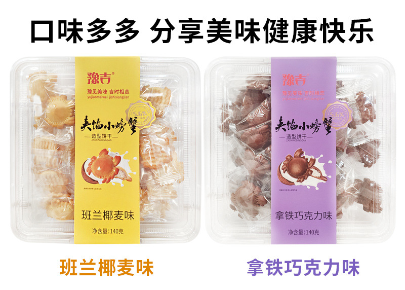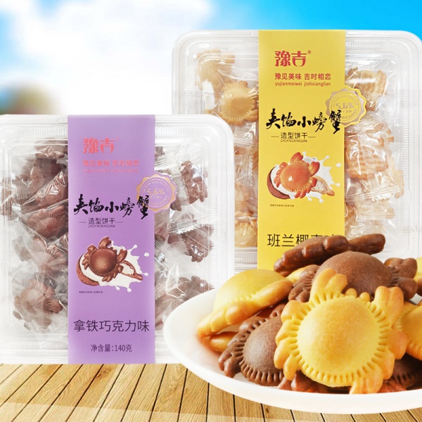 豫吉空心小螃蟹造型饼干140g食品旗舰店巧克力味椰麦饼干零食