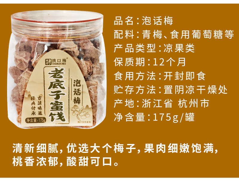 挑口梅老底子蜜饯罐装话梅杨梅老婆梅西梅盐津葡萄白桃零食酸甜