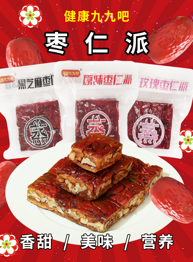 包邮健康九九吧枣仁派原味玫瑰芝麻红枣核桃仁夹心派核桃夹心糕