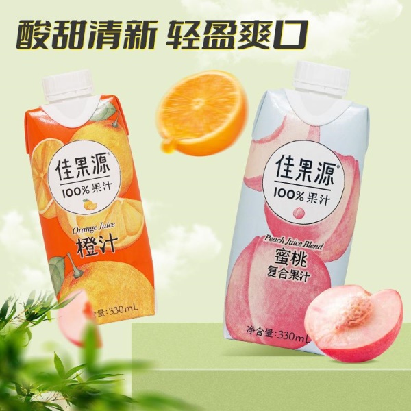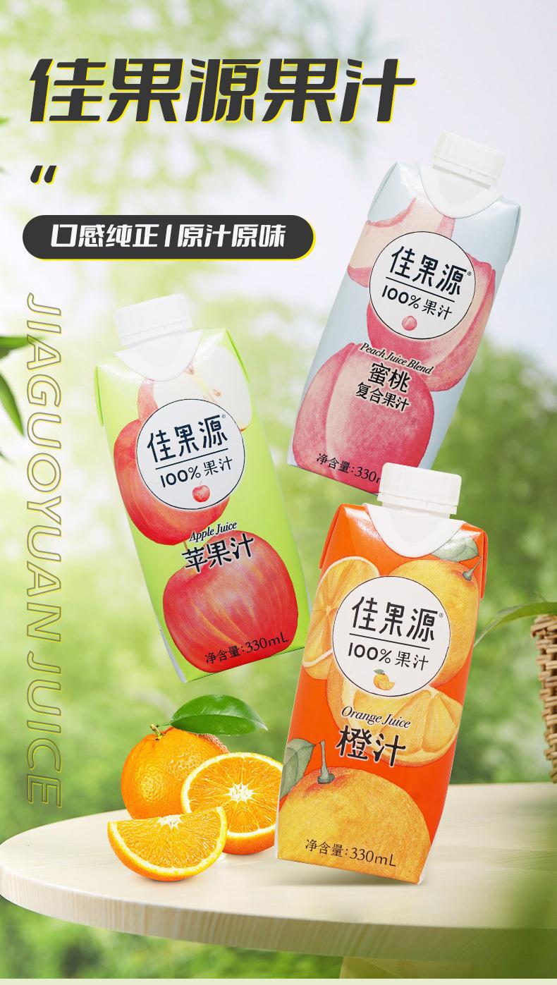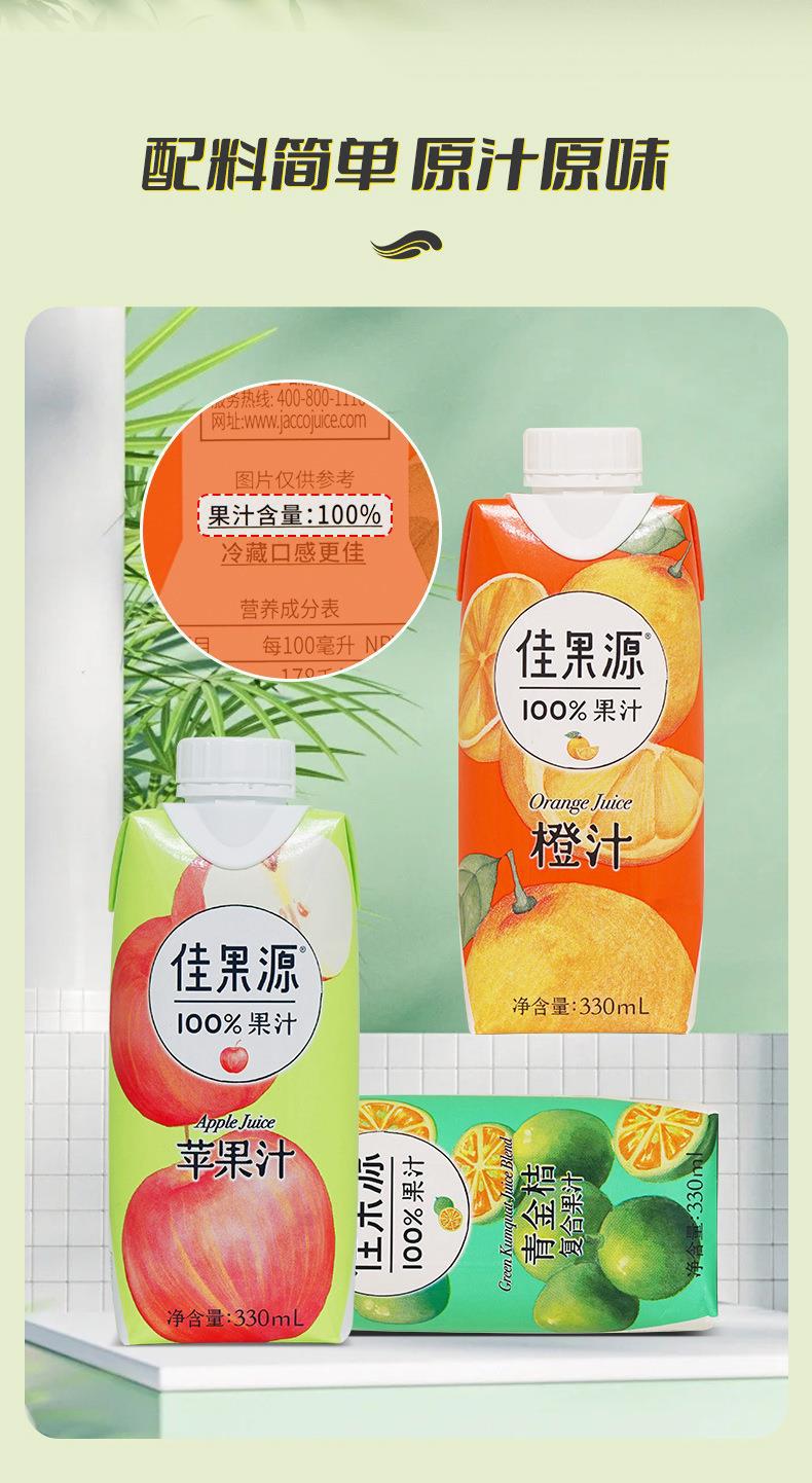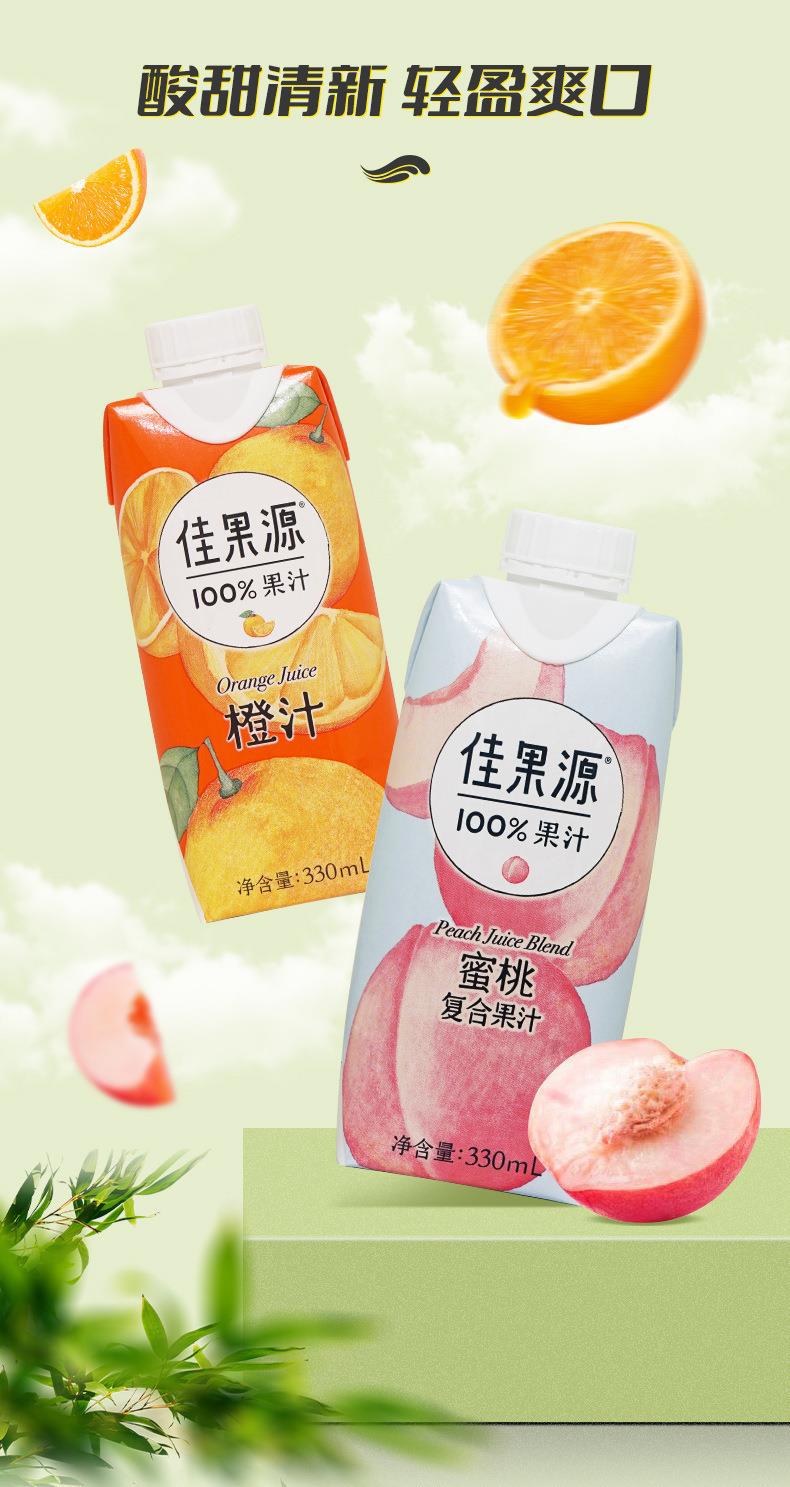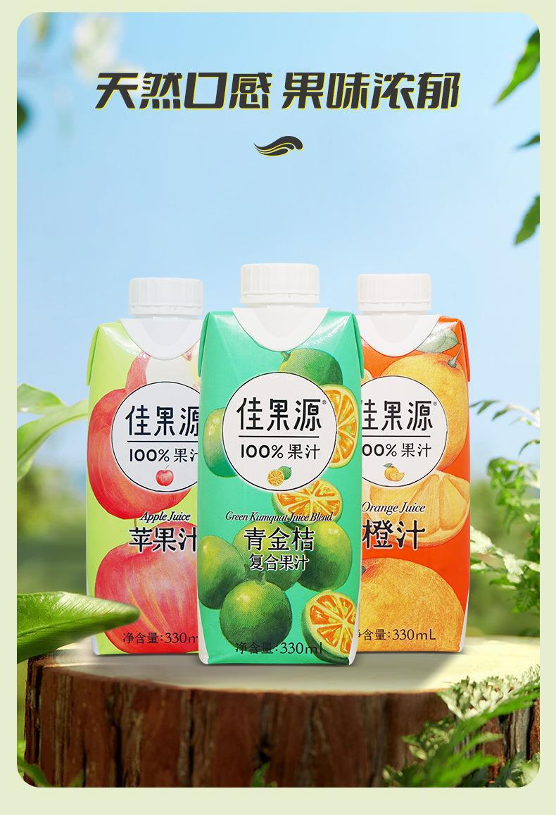 佳果源100%果汁饮料鲜榨橙汁苹果靑桔蜜桃汁椰子水330ml果汁饮料