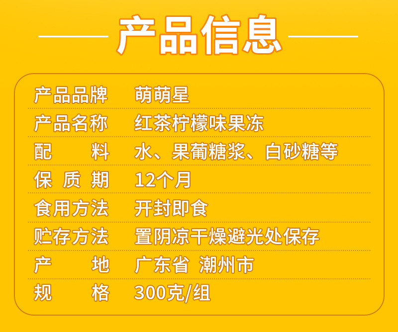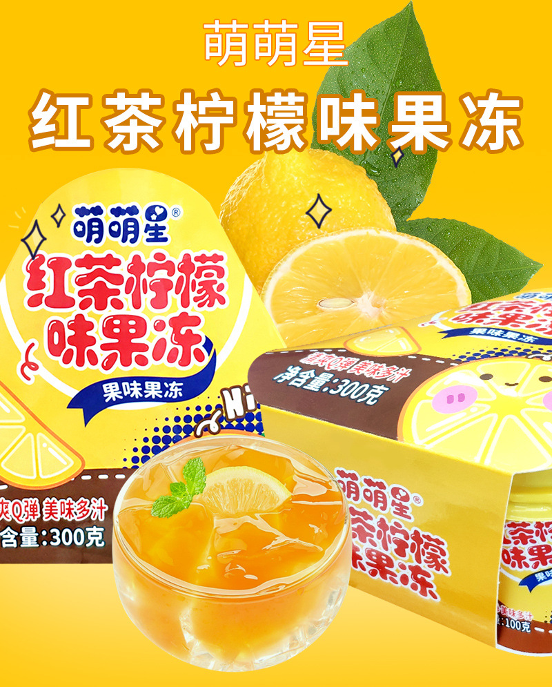 新品萌萌星红茶柠檬味果冻300g/组清凉冰镇凉爽果味果冻布丁