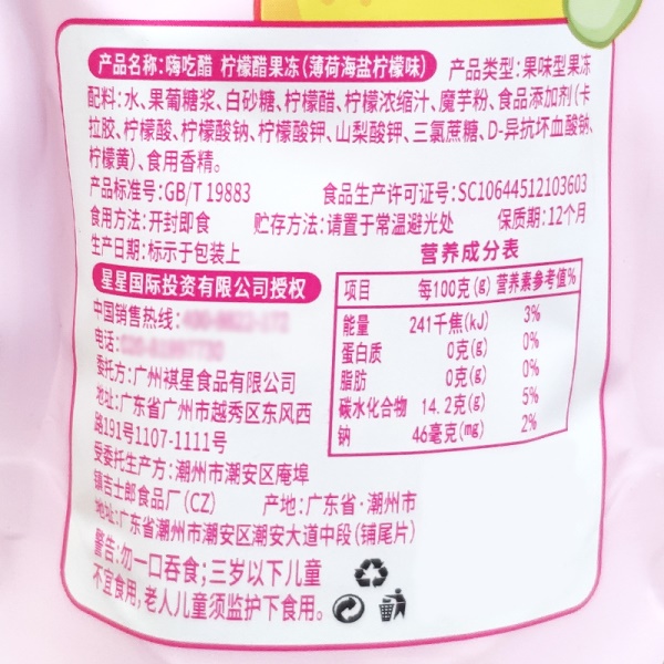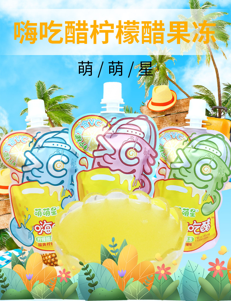 萌萌星嗨吃醋吸吸果冻柠檬醋果冻 酸爽柠檬味 薄荷海盐味一箱10斤