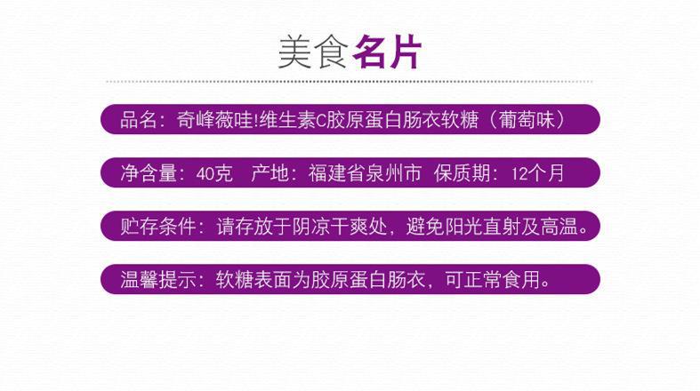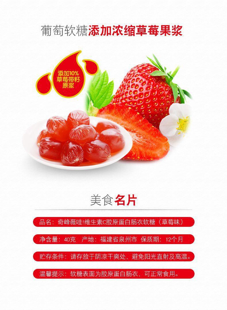 奇峰胶原蛋白肠衣软糖办公维生素C果汁软糖爆浆软糖水果味 40g