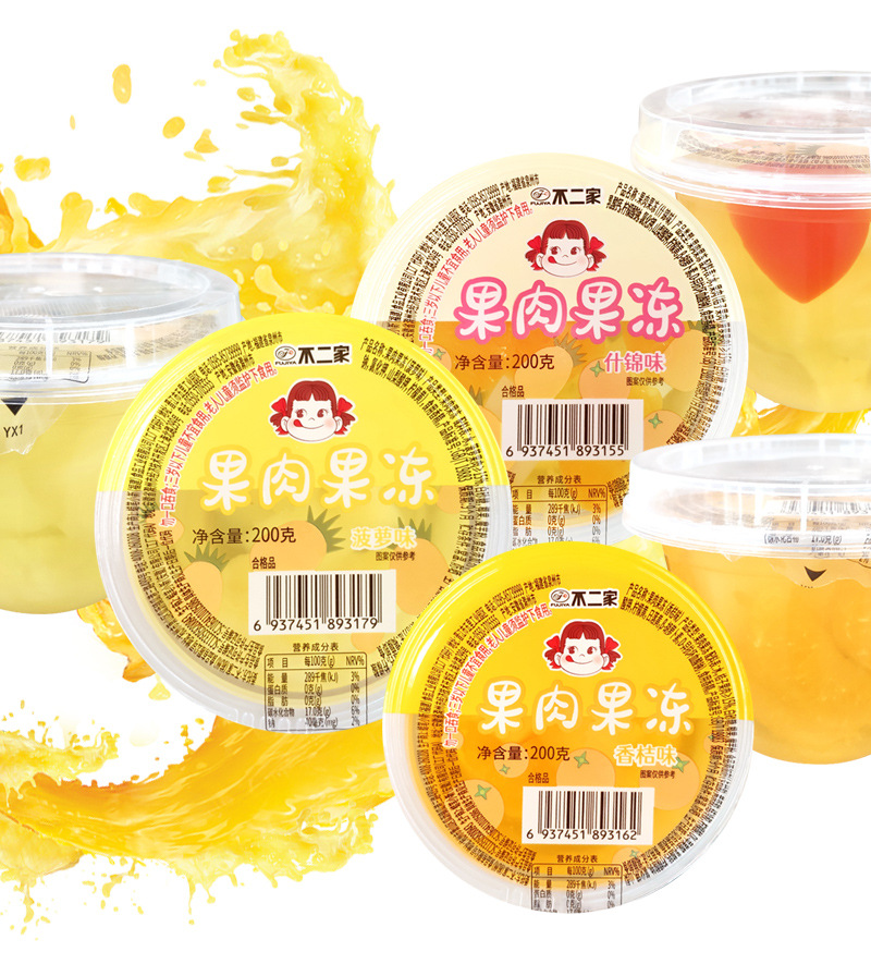 不二家 果肉果冻200g 香桔 什锦 菠萝果肉果冻 一件拍30杯