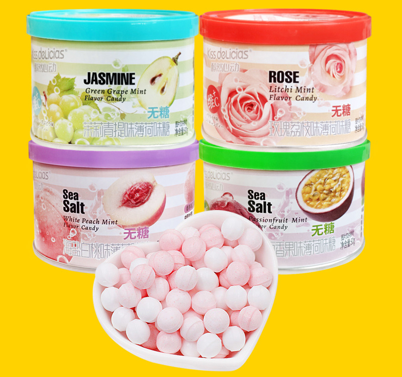 海亿kiss醇然心动薄荷味糖80g多种口味坚实型压片糖果零食 罐装