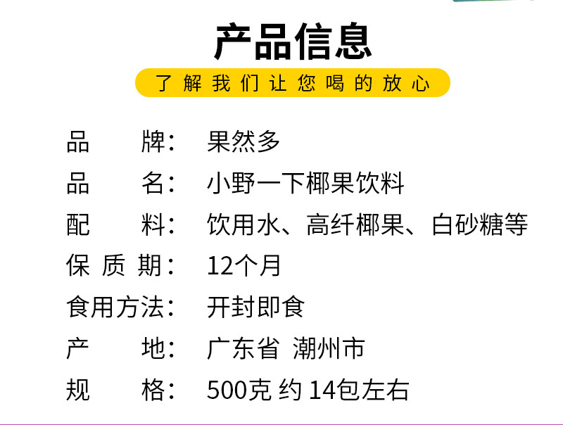 果然多小野一下椰果饮料 果汁椰果拖肥果冻 拖肥饮料一袋5斤