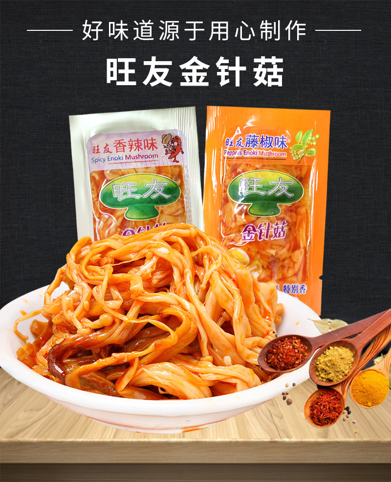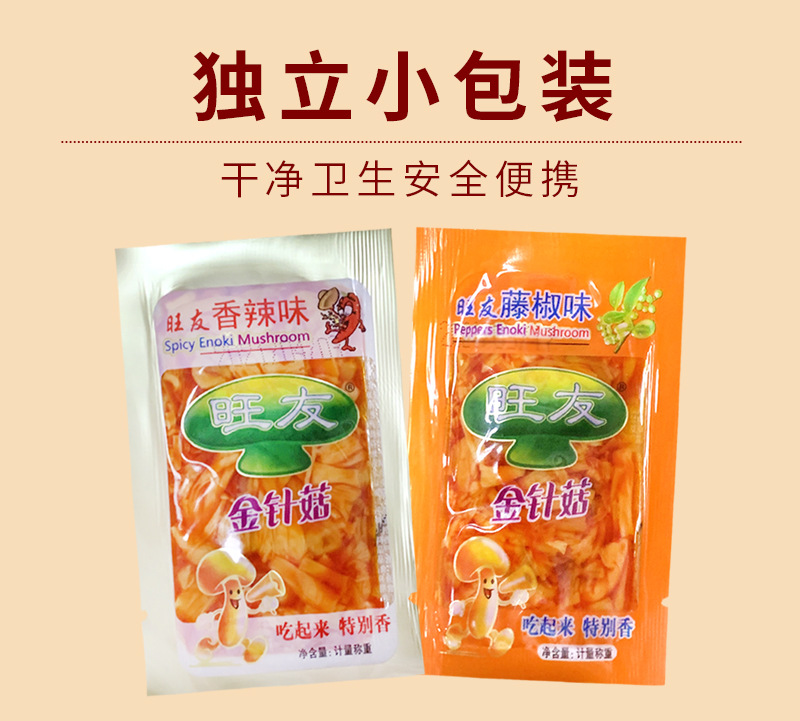 旺友金针菇5斤独立小包装香辣味藤椒味下饭菜批发速食纤维