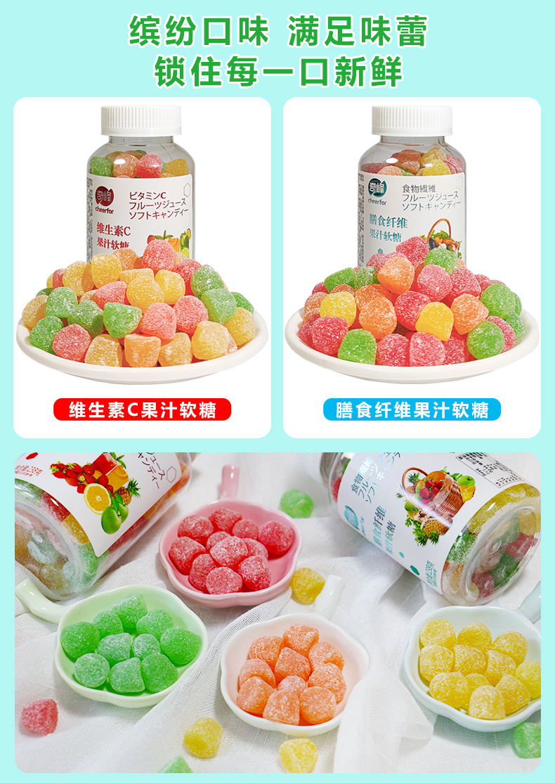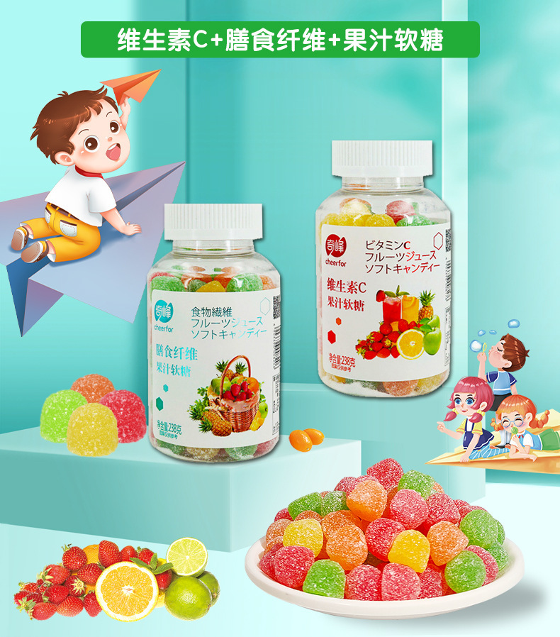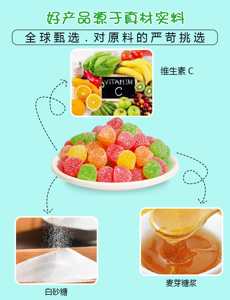 奇峰维生素C膳食纤维果汁软糖儿童橡皮糖混合多口味办公软糖238g