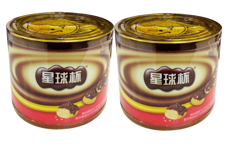 甜甜乐星球杯巧克力酱夹心饼干儿童零食婚庆年货桶装礼物120g/袋