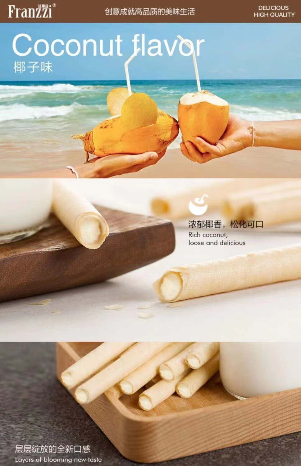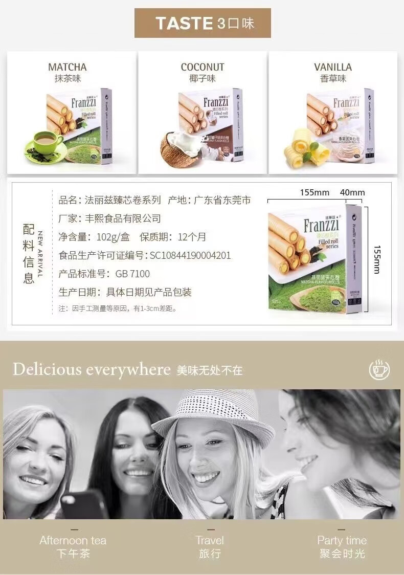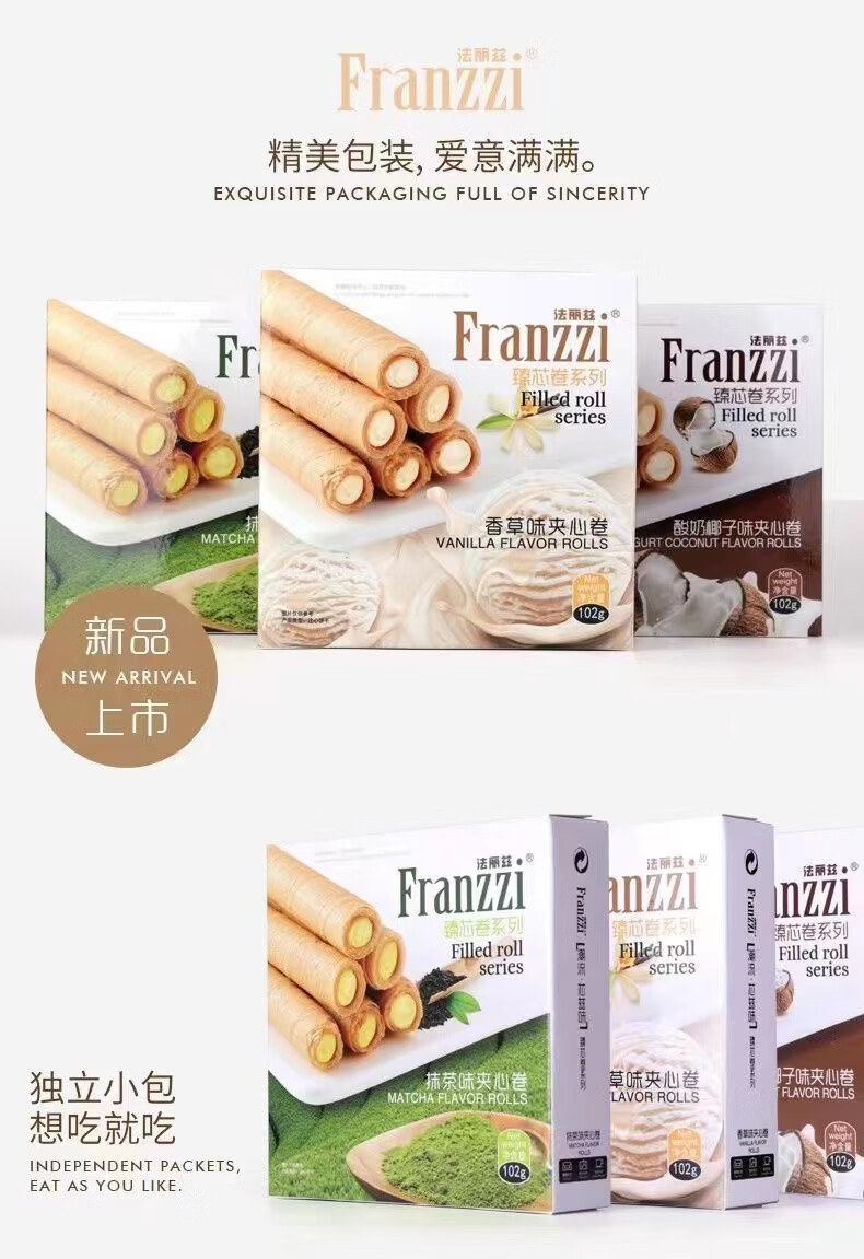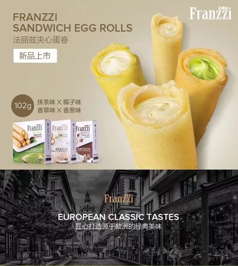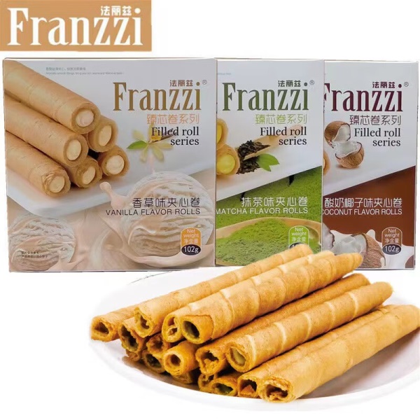 法丽兹102g夹心曲奇饼干抹茶椰子蛋卷网红休闲小吃办公室零食盒装