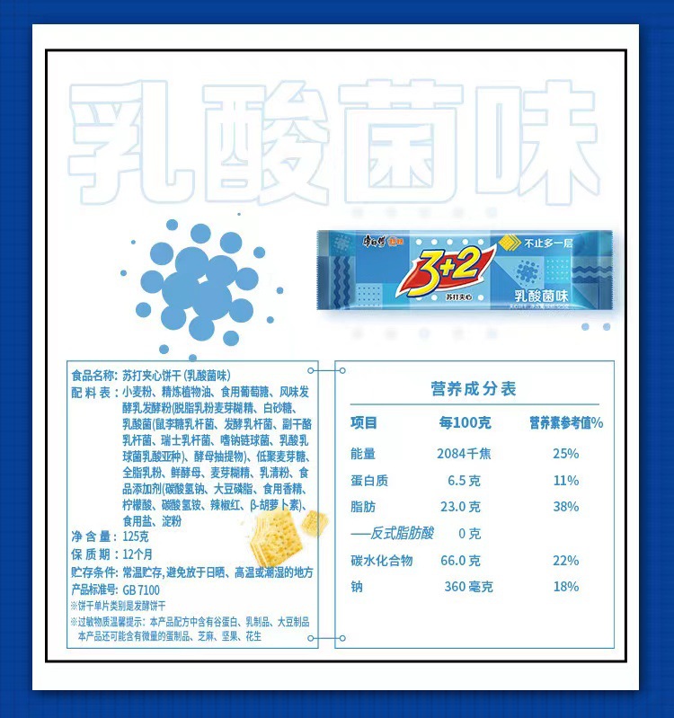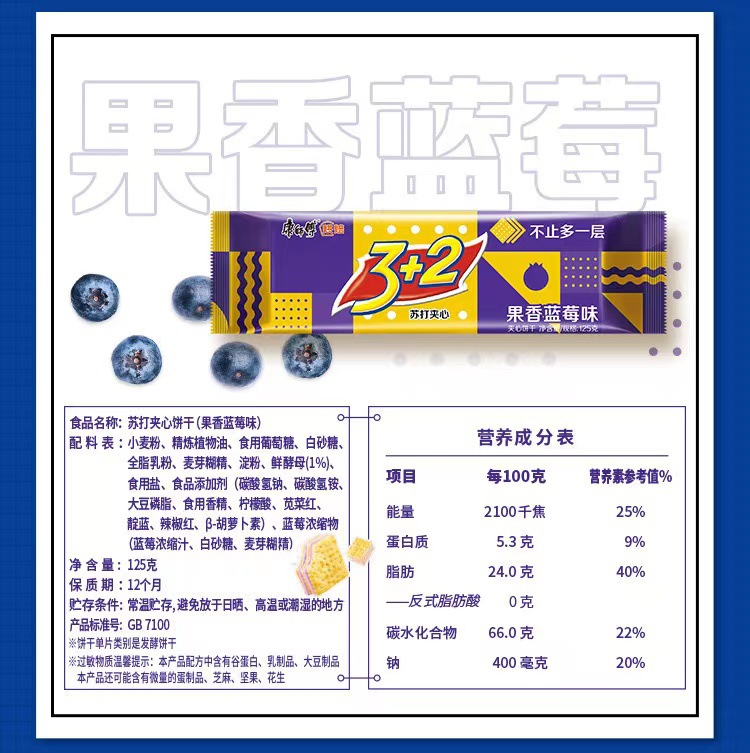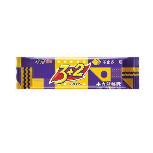 3+2苏打夹心饼干125g蓝莓味