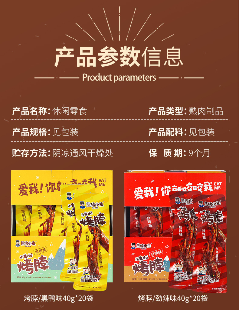煎烤小生40g烤脖整根非鸭脖手撕风干黑鸭劲辣糖醋肉类 小零食