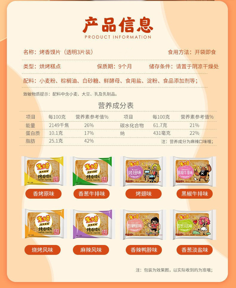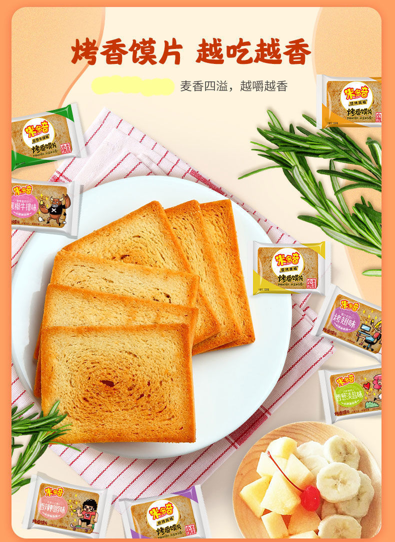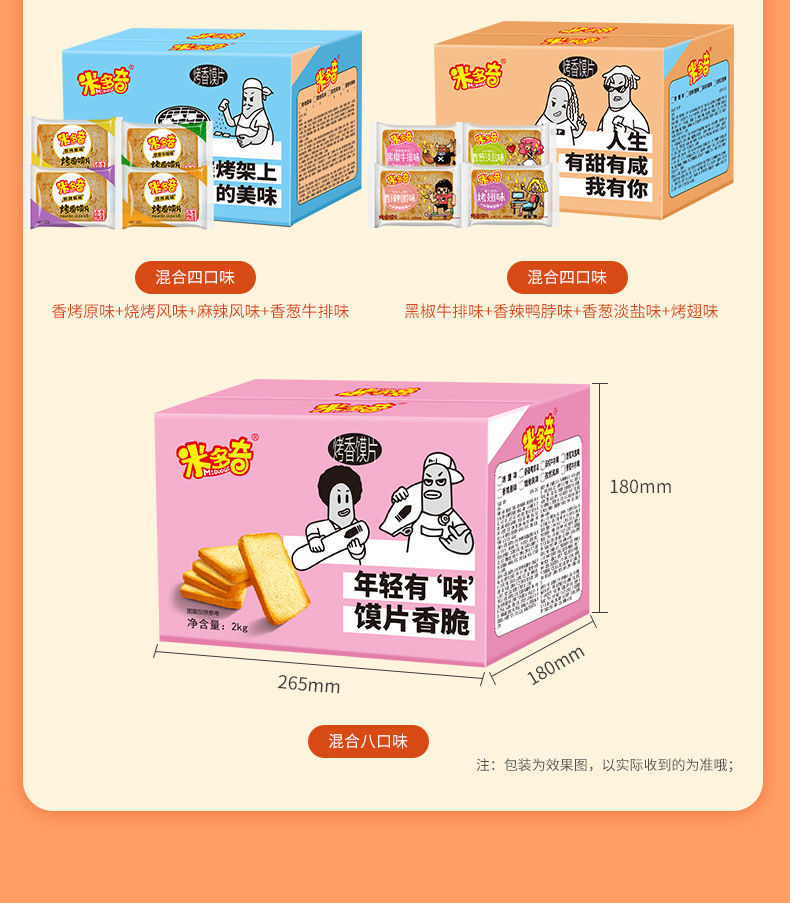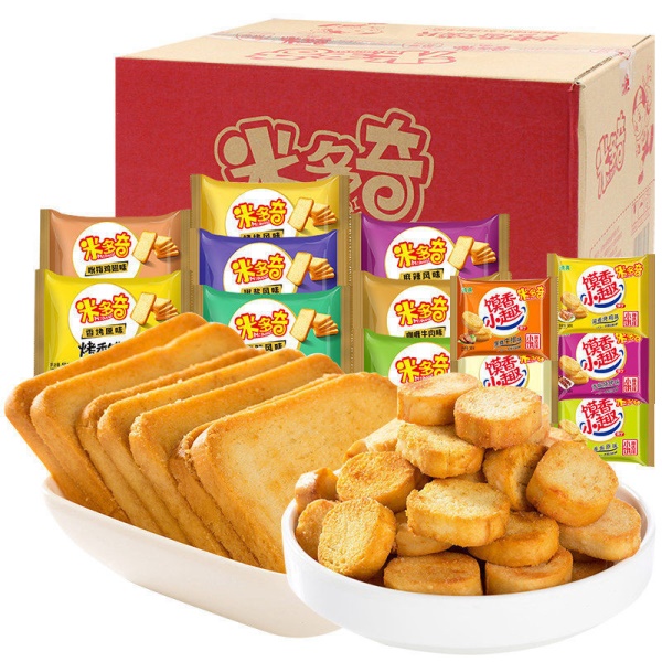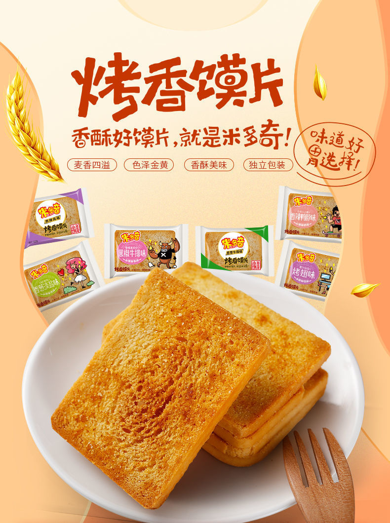 米多奇烤馍麻辣烤馒头压缩馍片饼干休闲食品小零食混合装整箱批发