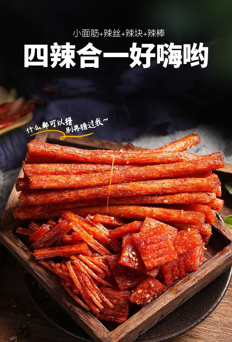 包邮新品辣典匠作豆筋超薄火鸡片狼牙碎碎棒香辣辣条休闲零食