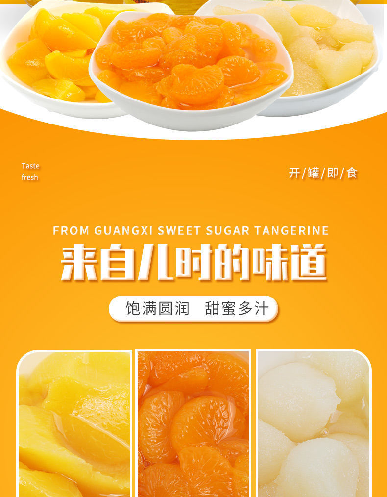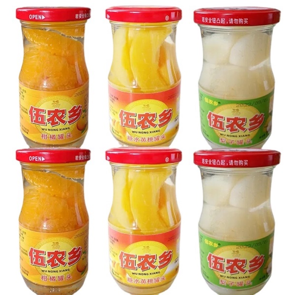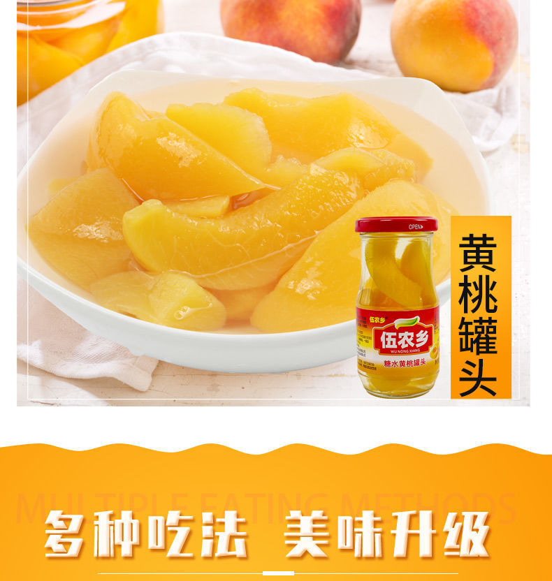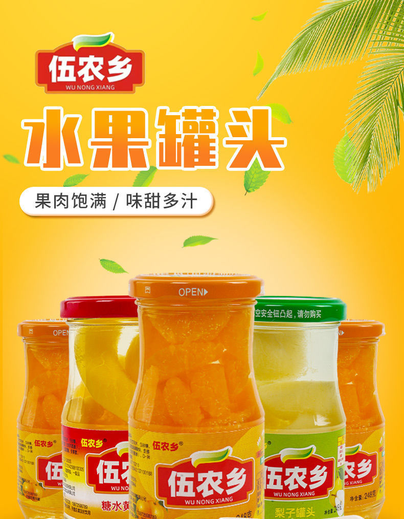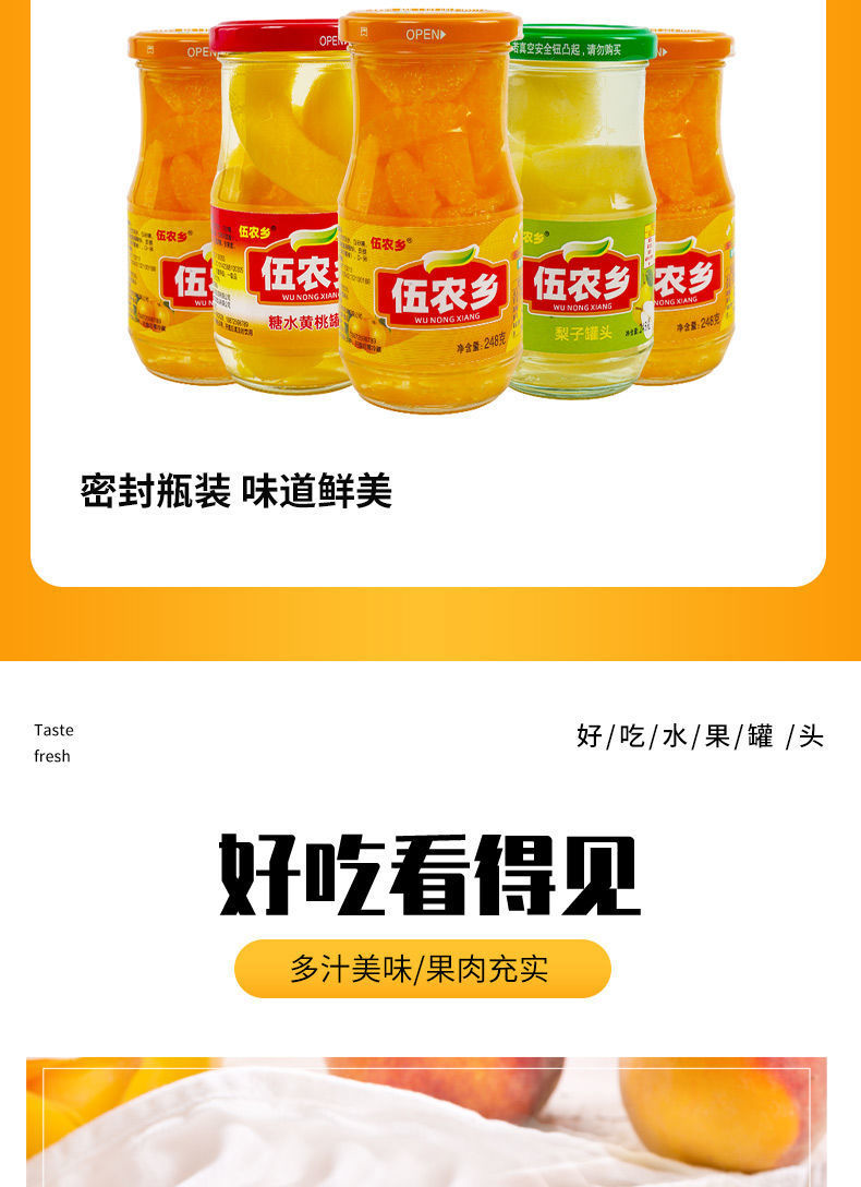 伍农乡水果黄桃罐头批发整箱橘子梨组合瓶装即食网红休闲食品商用