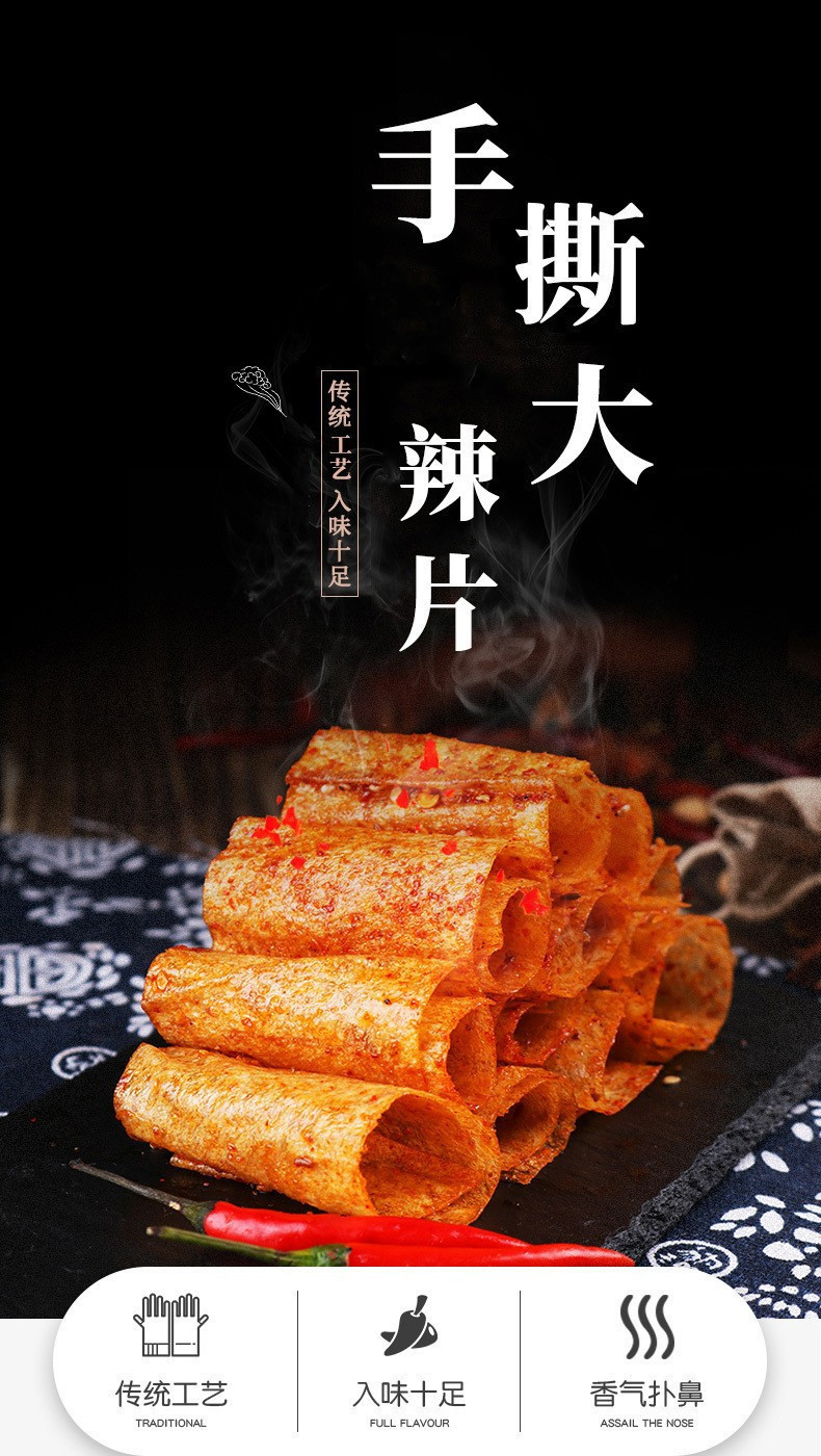 麻辣手撕豆皮辣条片80后怀旧儿时零食网红大辣片休闲小吃零食批发