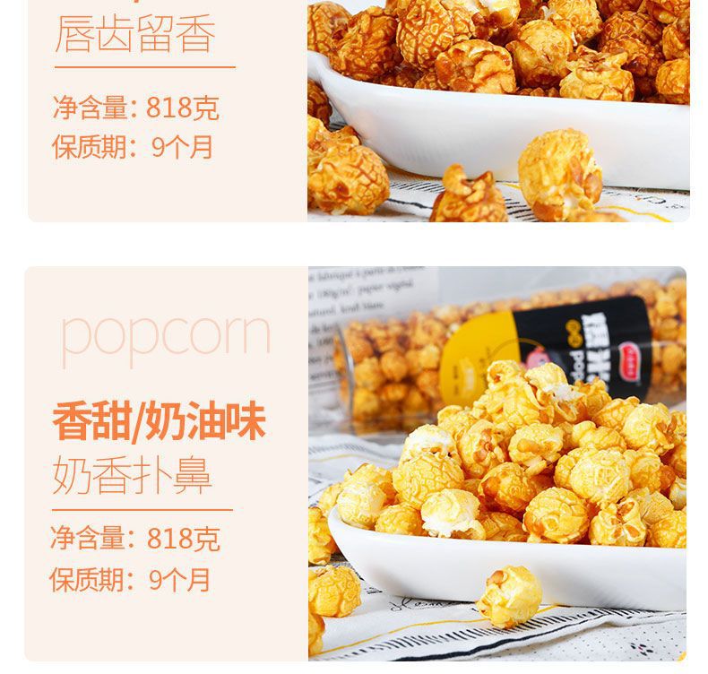 美式球形爆米花大桶学生休闲膨化食品奶油味玉米花办公室小吃零食