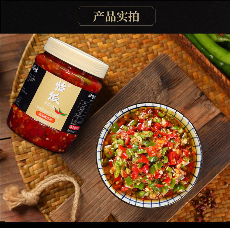 批发农家辣椒酱400g瓶下饭菜拌饭酱蒜蓉剁椒酱商用香辣双椒酱包邮
