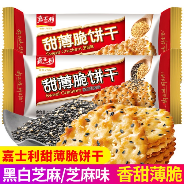 嘉士利100g芝麻甜薄脆饼干黑白糕点圆饼小零食休闲办公室网红早餐