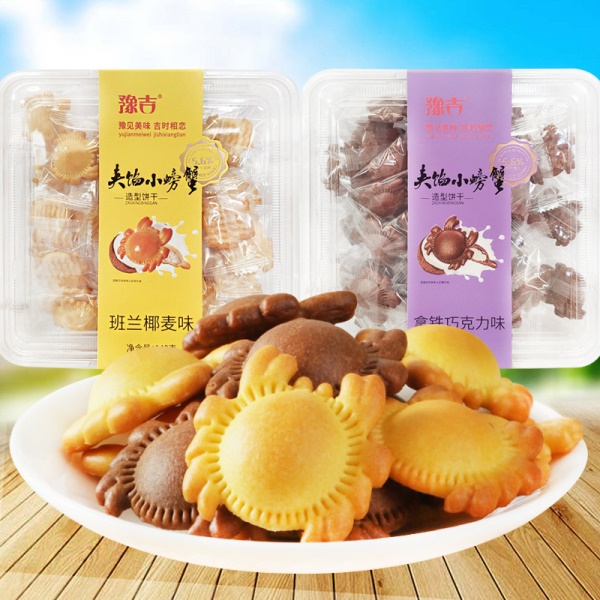 豫吉空心小螃蟹造型饼干140g食品旗舰店巧克力味椰麦饼干零食