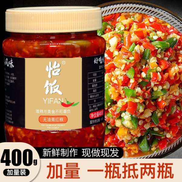 批发农家辣椒酱400g瓶下饭菜拌饭酱蒜蓉剁椒酱商用香辣双椒酱包邮